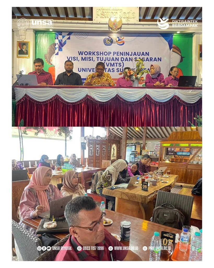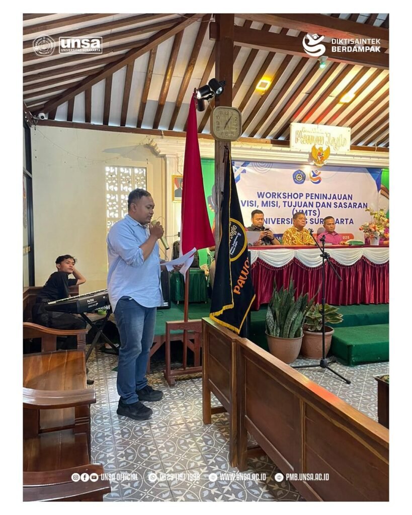 Kegiatan Workshop Peninjauan Sasaran VMTS bersama para Pimpinan dan Civitas Akademika Universitas Surakarta diselenggarakan untuk memastikan keselarasan visi, misi, tujuan, dan strategi universitas.